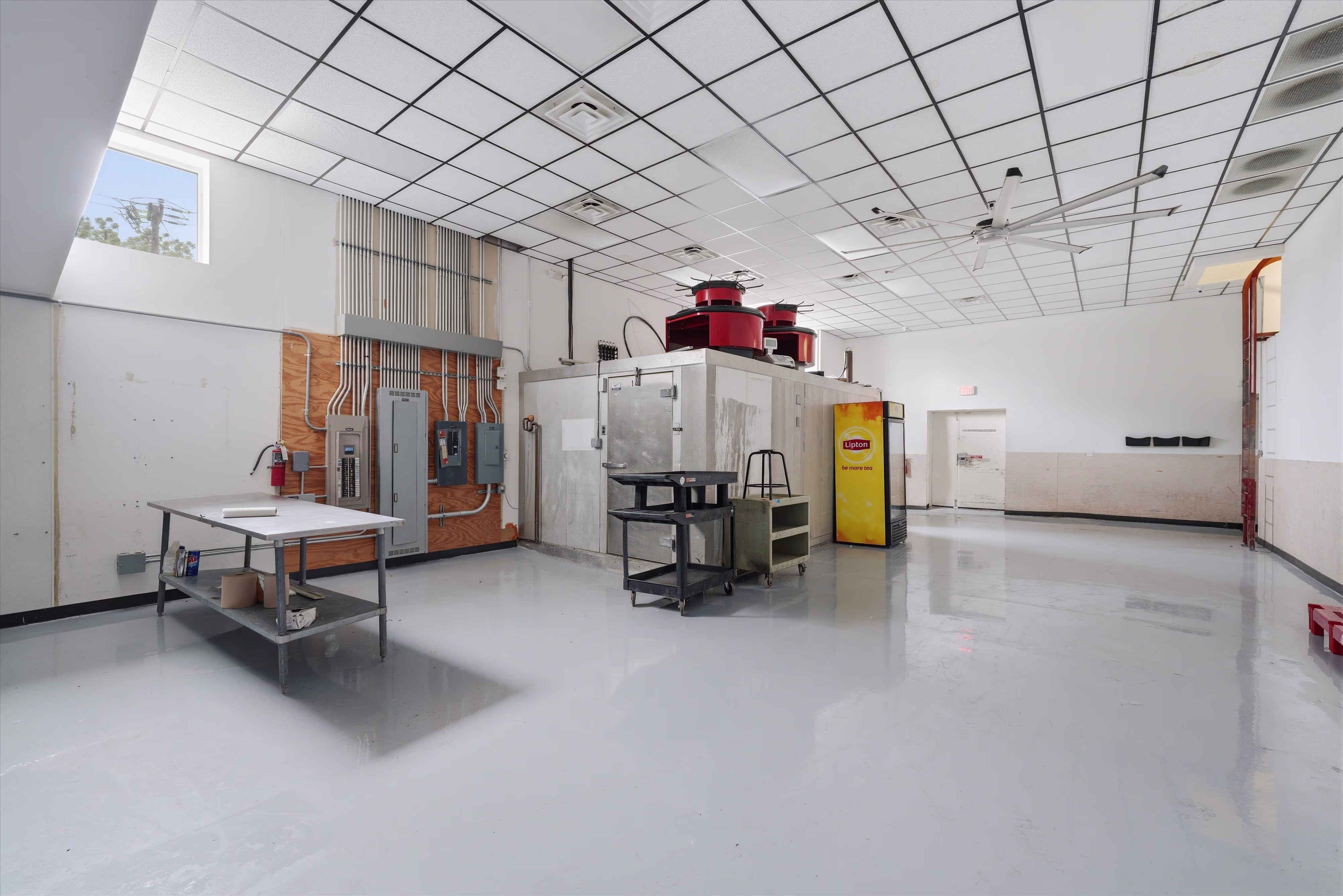 The building features an open layout designed to accommodate grocery operations, with ample space. Its size allows for flexibility, making it suitable for a variety of retail or service-oriented uses.