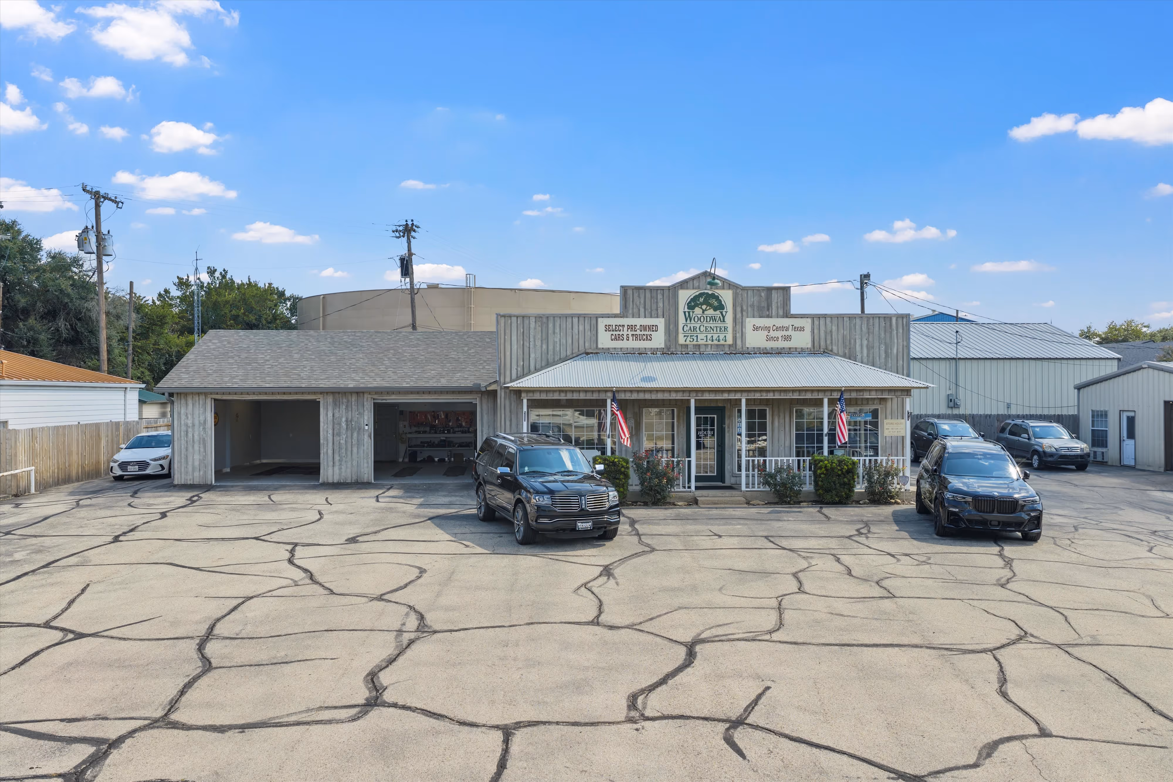 Woodway Car Center has served central Texas by providing select high-quality pre-owned vehicles for over 35 years. Visibility from Woodway Dr (US Hwy 84) is outstanding, making the location simple for customers to find. Situated on a corner lot, this property is easily accessible through the main entrance on the Woodway Dr service road, or by two separate driveways on the side street, MB Industrial Dr. The asphalt surface car lot easily accommodates over 50 vehicles on display, also featuring low- profile pipe fencing around the perimeter and overhead light standards.